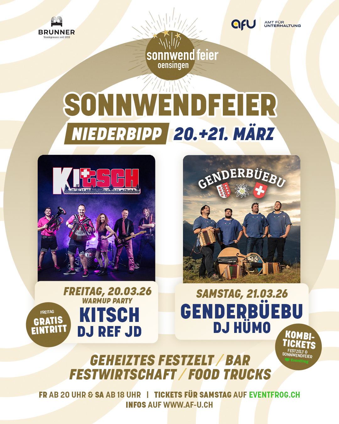 Die erfolgreichste Schweizer Örgeli-Formation GENDERBÜEBU aus dem Wallis spielt ein exklusives Konzert und verwandelt das Festzelt in eine echte Ländlerparty.
